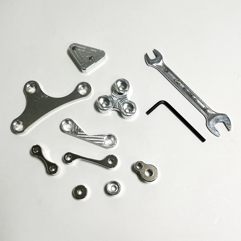 バックステップを製作する際に生まれたアルミ端材をブロックにして ボルトナットで組み立てる体験です。